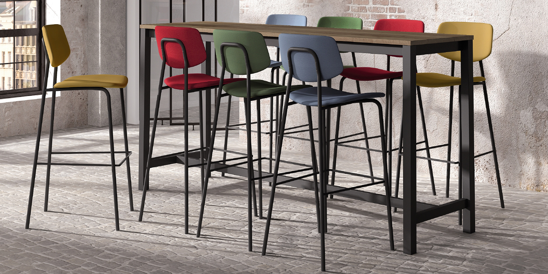 Ensemble table ViennaBar and stools BarLago